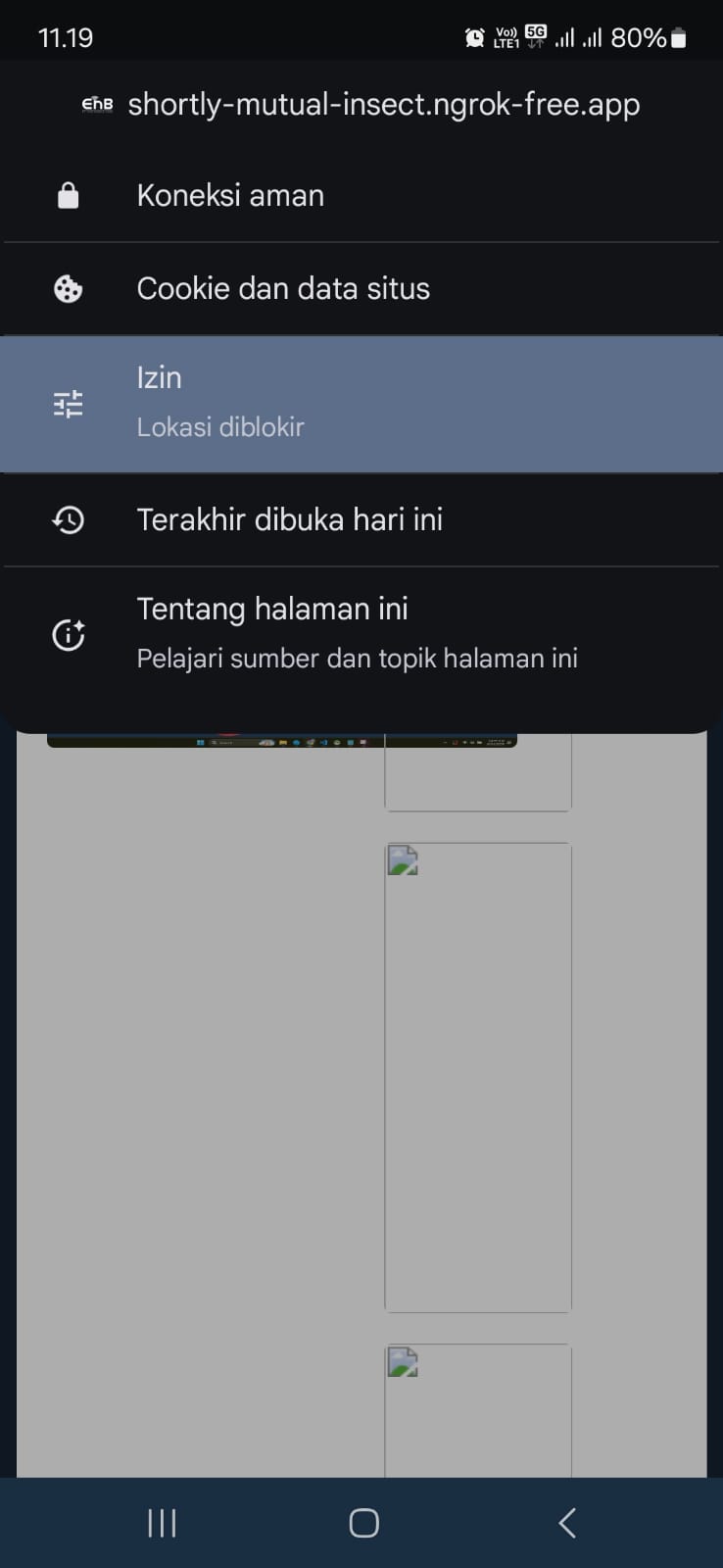 Untuk melakukan reset izin lokasi di browser mobile klik tombol yang dilingkari warna merah.